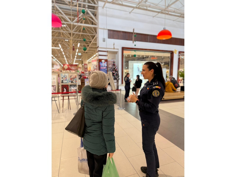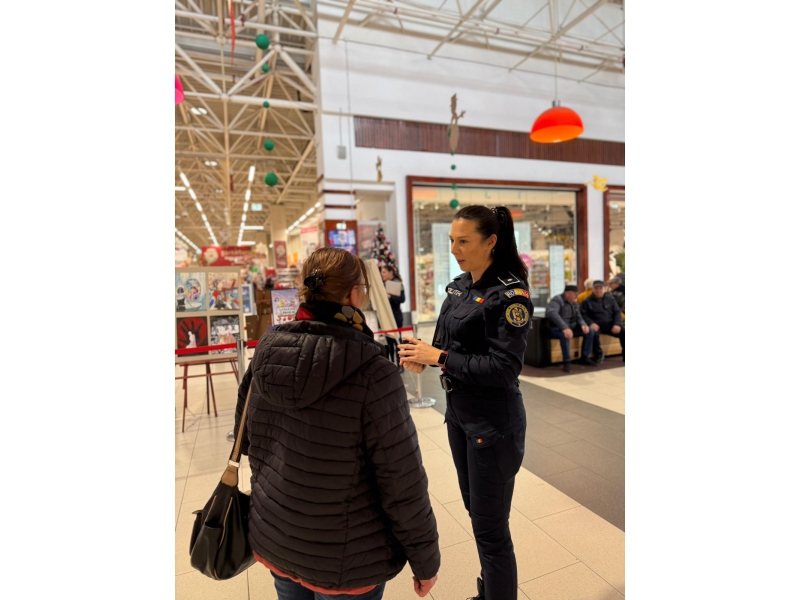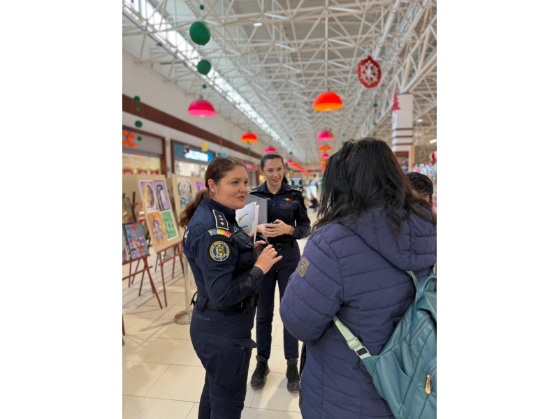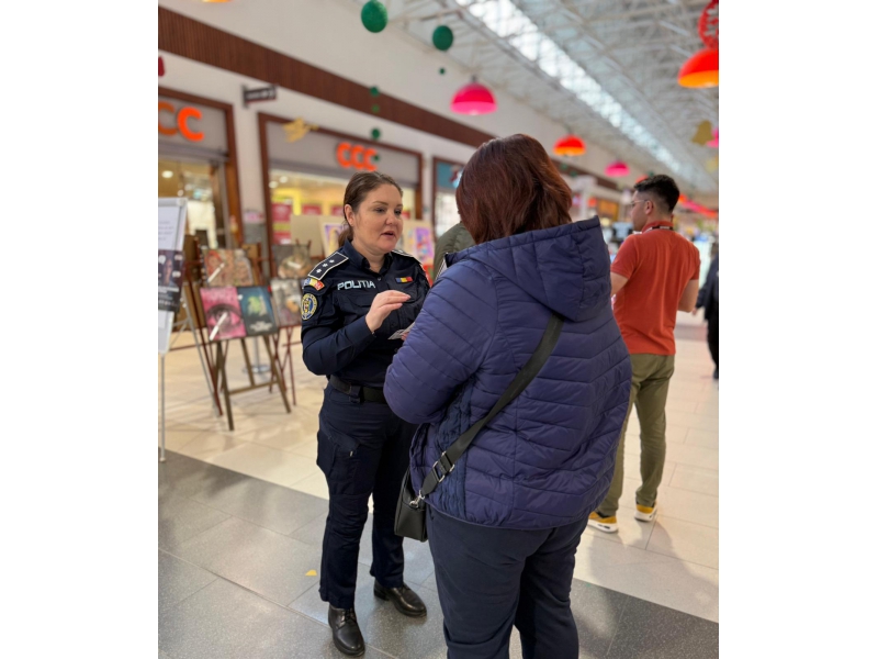 Având în vedere faptul că manifestarea „16 Zile de Activism împotriva Violenței de Gen” s-a încheiat astăzi, 10 decembrie, polițiștii de prevenire și ordine publică au fost prezenți în zona expozițională a centrului comercial, discutând cu cei prezenți și transmitând mesaje preventive.