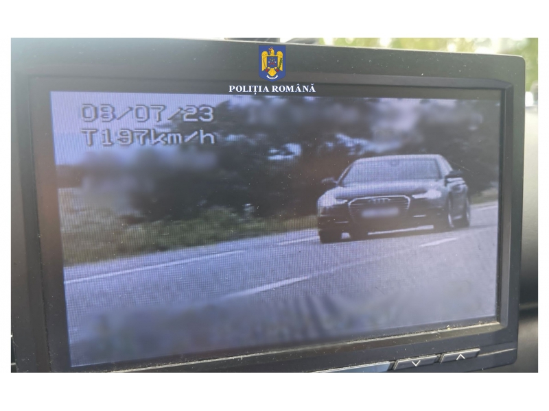 Un conducător auto de 23 de ani, din municipiul Pașcani a fost depistat de un echipaj de poliție din cadrul Serviciului Rutier Bacău, în afara localitatății Sascut, în timp ce conducea un autoturism cu viteza de 197 de km/h. Tânărul a fost sancționat contravențional cu amendă în valoare de 2.900 de lei, iar ca măsură complementară i-a fost reținut permisul de conducere pentru o perioadă de 150 de zile.
