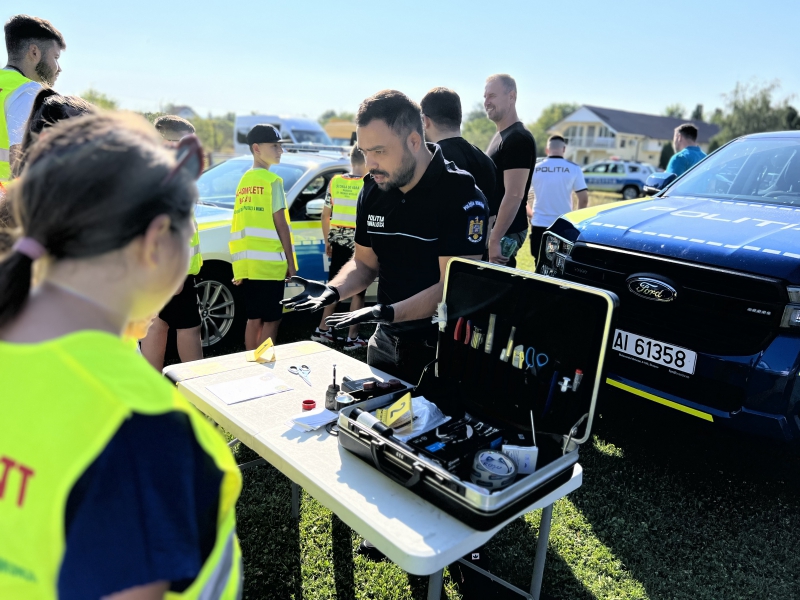La atelierul de criminalistică, copiii au aflat mai multe despre modalitatea în care polițiștii dau de urma infractorilor, folosindu-se de tehnica din dotare.