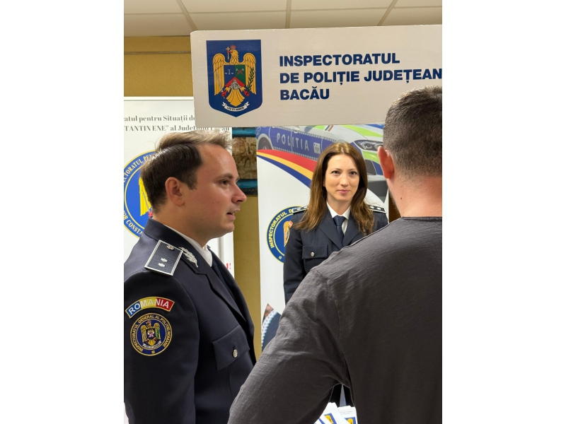 Astăzi, 23 mai a.c, polițiștii din cadrul Inspectoratului de Poliție Județean Bacău au fost prezenți la Bursa locurilor de muncă, organizată de Agenția Judeţeană pentru Ocuparea Forței de Muncă Bacău.