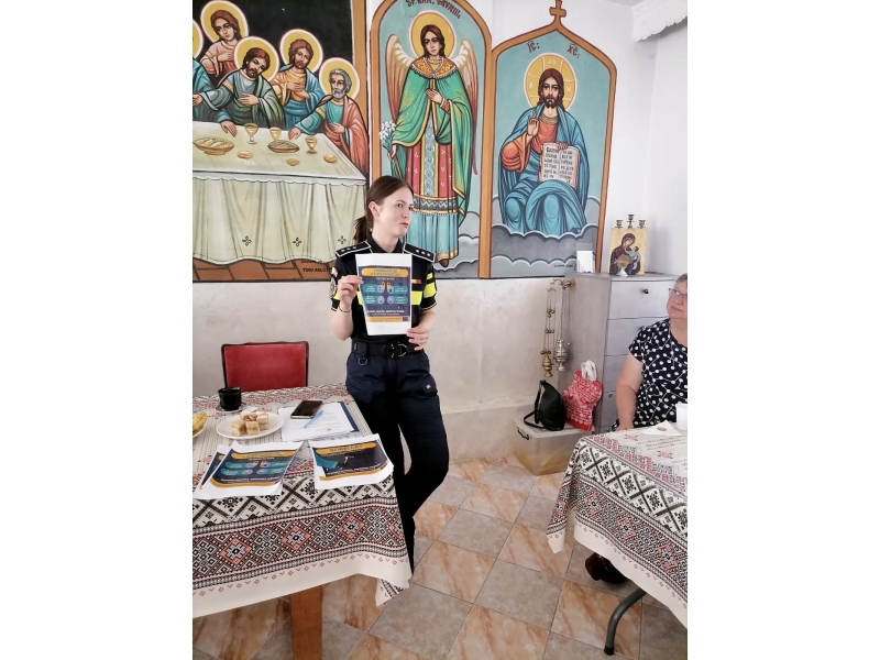 Polițiștii au discutat cu reprezentanții asociațiilor de proprietari, dar și cu seniorii Parohiei ”Sfinții Apostoli Petri și Pavel” din municipiul Bacău și le-au oferit flyere și informații referitoare la factorii favorizanți ai infracțiunilor de furt din locuință, modurile de operare cel mai frecvent utilizate, precum și principalele măsuri de siguranță pentru protejarea locuinței și a bunurilor personale.