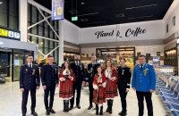 Membrii fanfarei militare din cadrul Garnizoanei Bacău i-au surprins plăcut pe pasagerii de la Terminalul Sosiri unde au interpretat Imnul Național al României.