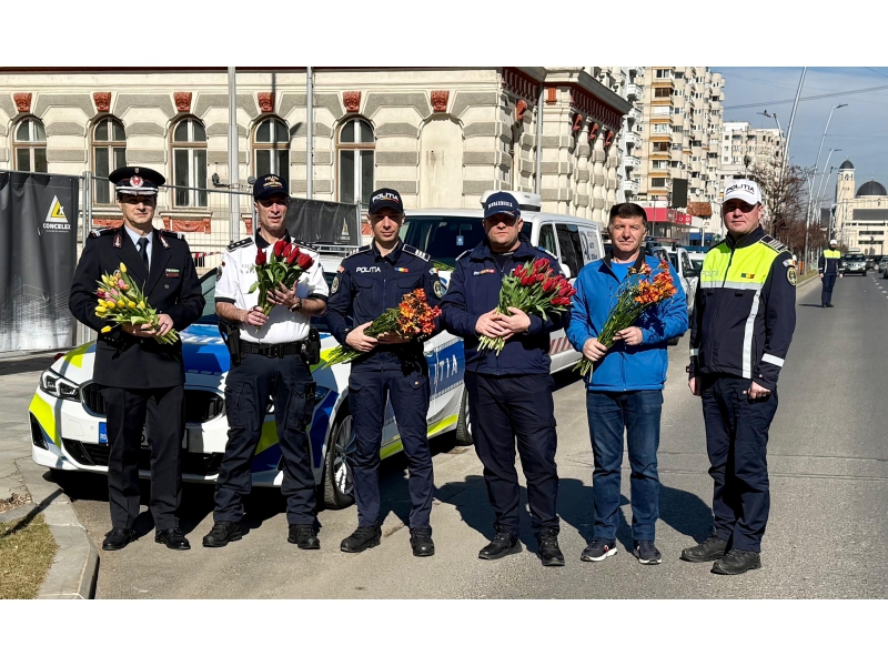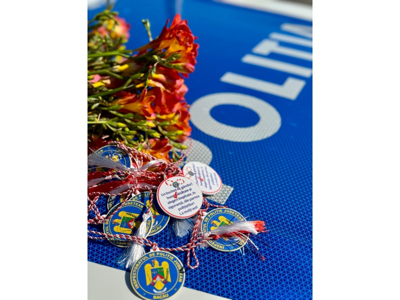 Astfel, polițiștii Inspectoratului de Poliție Județean Bacău, polițiștii de frontieră de la Punctul de Trecere a Frontierei Aeroport George Enescu, jandarmii Grupării de Jandarmi Mobile, pompierii Inspectoratului pentru Situații de Urgență, alături de voluntari și reprezentanți din cadrul Registrului Auto Român, au fost alături de comunitate, în municipiul Bacău, oferind flori și mărțișoare doamnelor și domnișoarelor aflate în trafic.