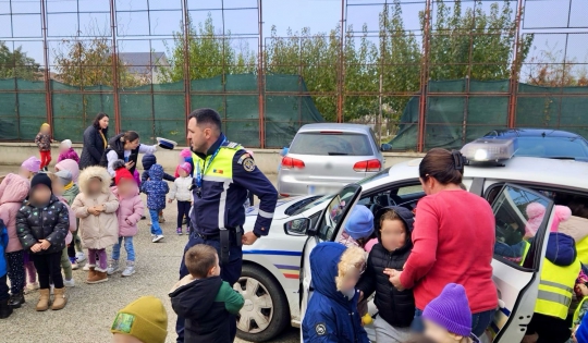 Celor mici le-au fost prezentate regulile principale de circulație, modalitățile sigure de deplasare către și de la grădiniță sau școală, importanța traversării corecte a străzii și necesitatea respectării semnelor și indicațiilor polițistului rutier.