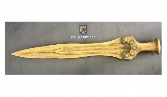 În urma percheziției, polițiștii au descoperit o sabie, care, conform unei evaluări preliminare, ar putea data din epoca bronzului, având o vechime estimativă de aproximativ 3.500 de ani.