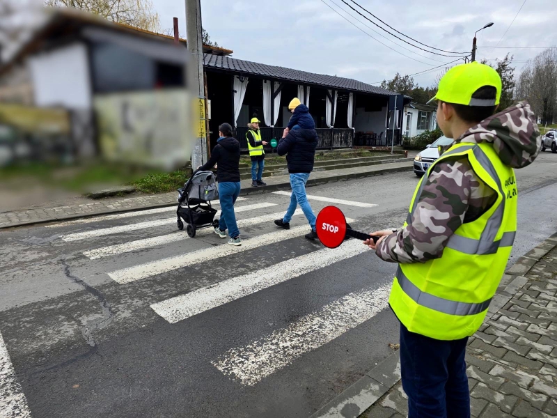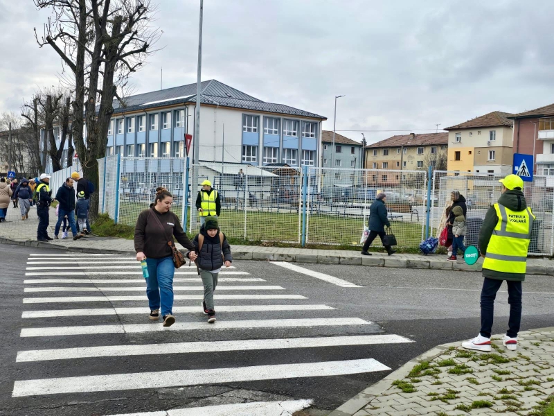 În zona adiacentă trecerilor pentru pietoni din apropierea unităţii de învăţământ, elevii implicați în patrulă, coordonați de polițiști și de profesorii responsabili, au dirijat traficul rutier și au sprijinit traversarea în siguranță a colegilor lor.