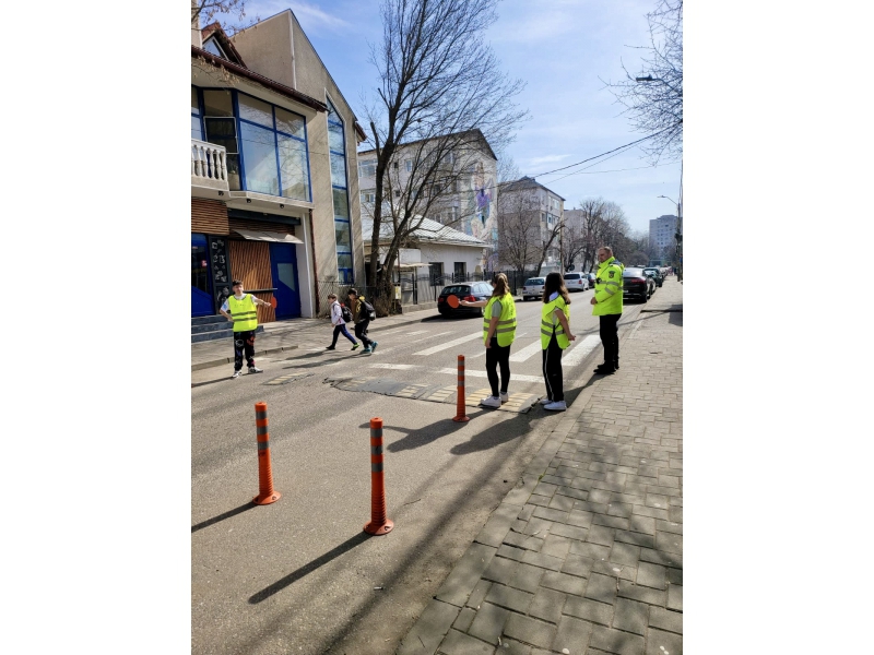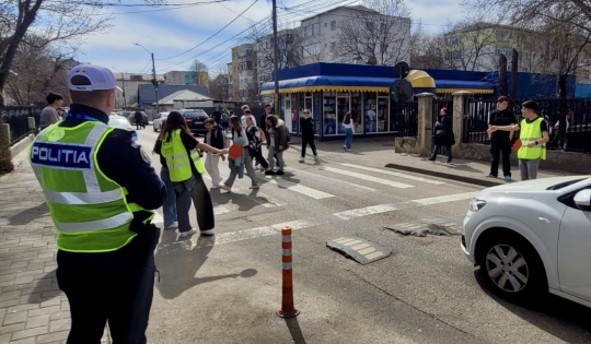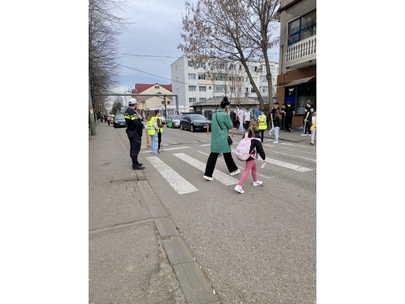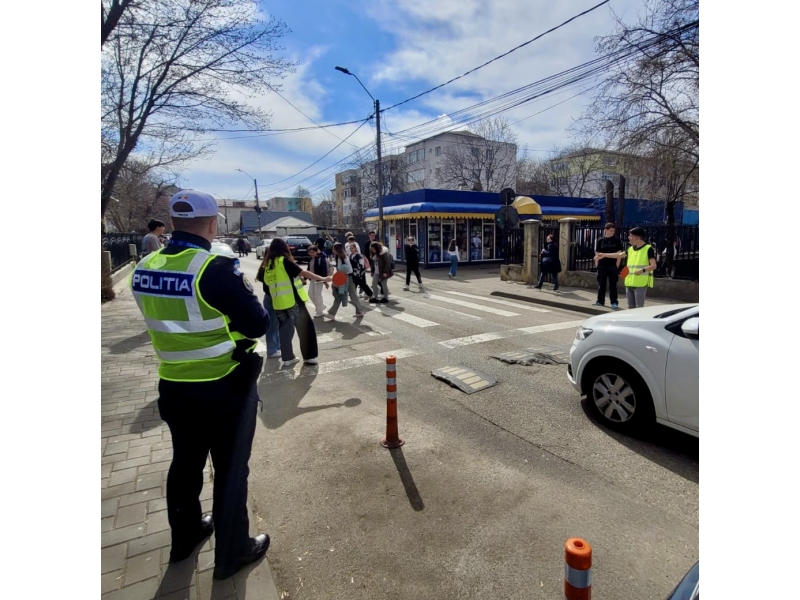 Pentru a implica direct elevii în menținerea siguranței rutiere, aceștia au fost echipați cu palete de dirijare și veste reflectorizante și au asigurat, împreună cu polițiștii, traversarea pietonilor în siguranță, pe trecerea de pietoni din zona școlii.