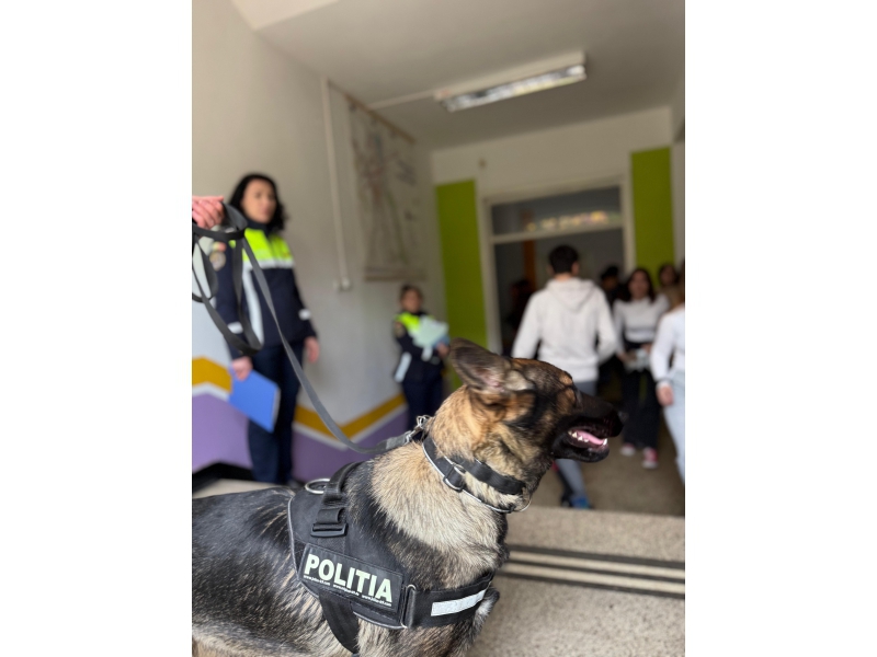 Elevilor le-a fost prezentat și rolul câinilor polițiști în activitatea operativă, aceștia având ocazia să o cunoască pe Iris și să observe modul de lucru al echipei formate din conductor și câine de serviciu.