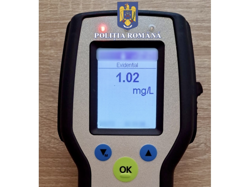 În urma testării cu aparatul etilometru a rezultat o concentrație de 1,02 mg/l alcool pur în aerul expirat, cel în cauză fiind condus la spital în vederea recoltării de mostre biologice de sânge.