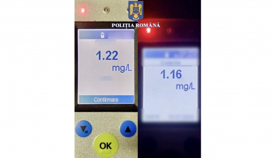 La testarea cu aparatul etilotest, a rezultat o concentrație de 1,16 mg/l alcool pur în aerul expirat. Bărbatul a fost, de asemenea, condus la spital pentru recoltarea de probe biologice.